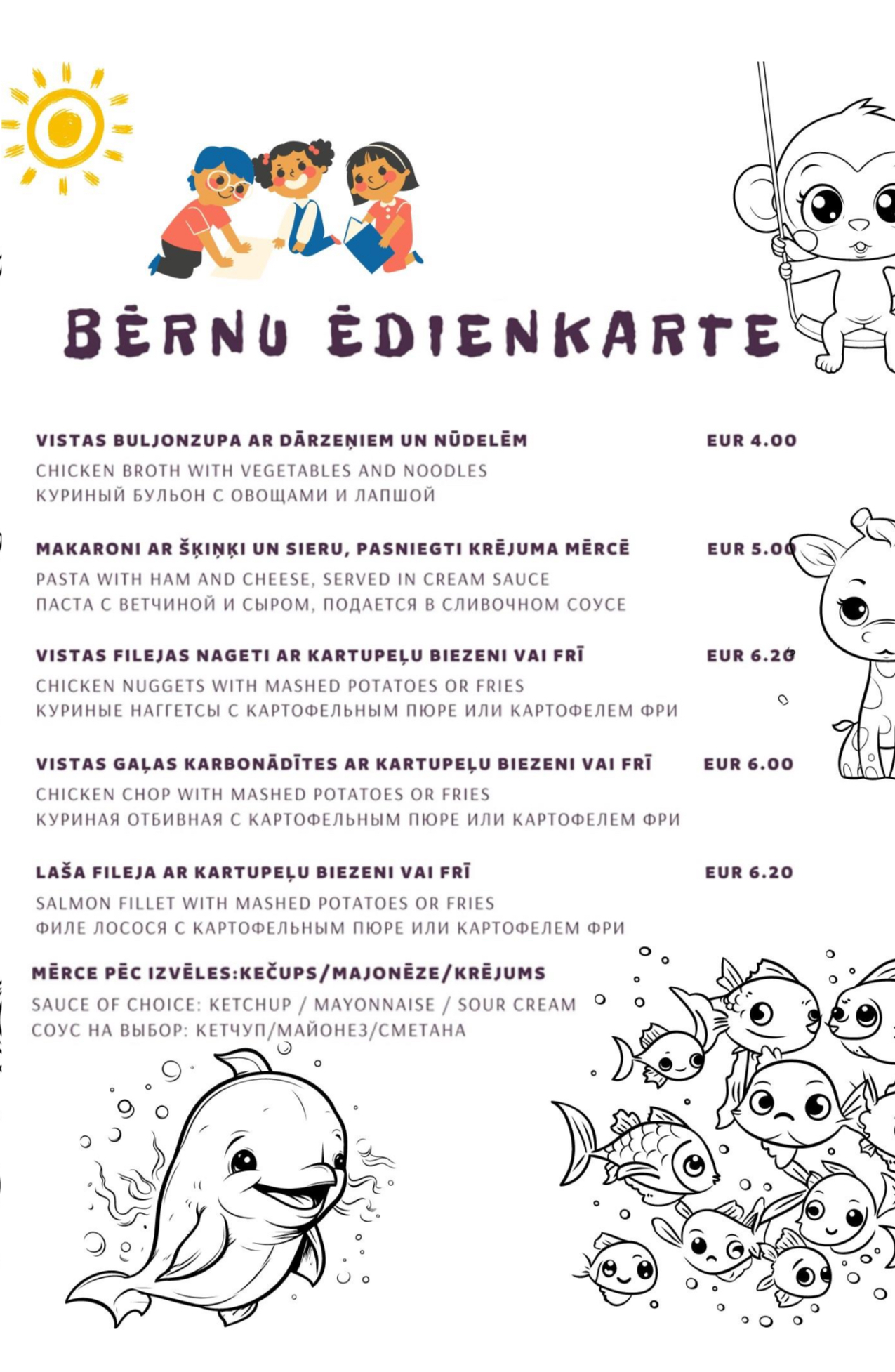 Click the "ĒDIENKARTE / MENU" to view the menu. Vīna karti jautāt personālam / Ask the staff for the wine card